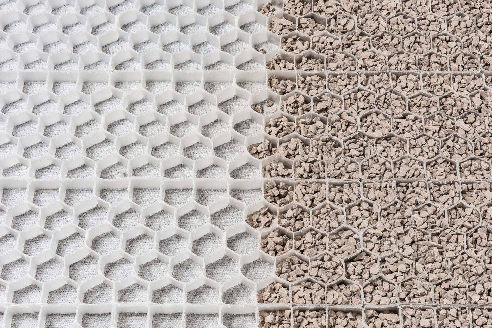 Il sistema Nidagravel rappresenta la soluzione definitiva per chi desidera l’eleganza estetica delle superfici in ghiaia senza i tradizionali problemi di manutenzione e stabilità. Realizzato in PVC di alta qualità, questo innovativo grigliato di colore bianco crea una struttura alveolare invisibile che mantiene il ghiaino perfettamente in posizione, eliminando i tipici inconvenienti delle pavimentazioni in ghiaia tradizionali.