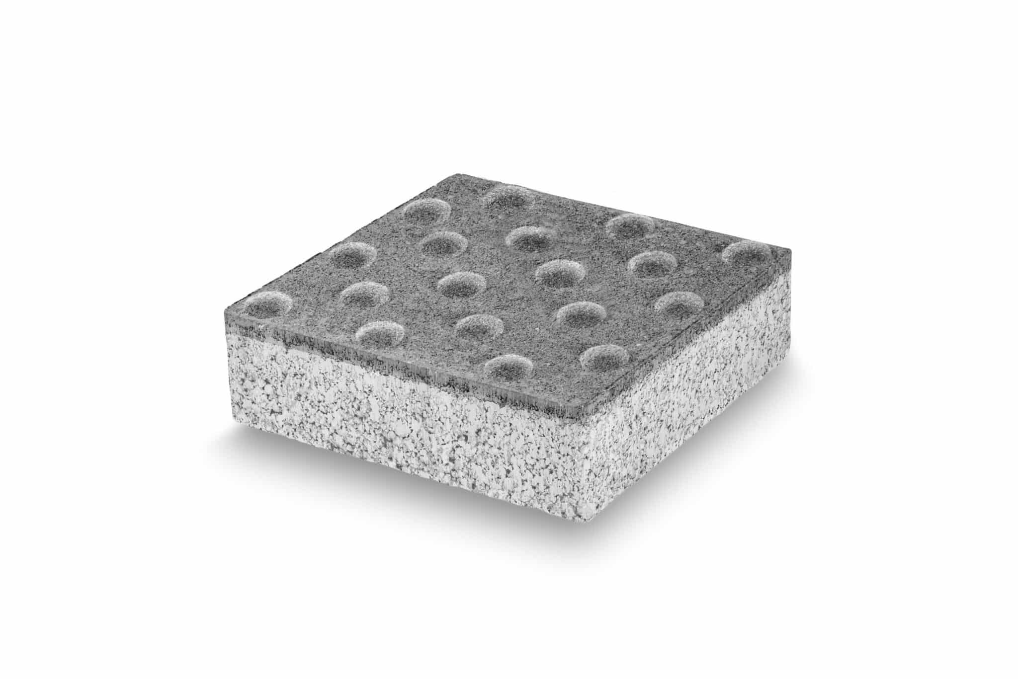 Il Segnale Tattile di Arresto a palline rappresenta un elemento fondamentale nei sistemi di accessibilità urbana per non vedenti e ipovedenti. Realizzato in calcestruzzo di alta qualità con doppio strato di quarzo, questo massello specializzato è caratterizzato da una superficie con distintivi rilievi sferici, specificamente progettati per essere facilmente identificabili al tatto attraverso il bastone o la suola delle scarpe, segnalando in modo inequivocabile la necessità di arrestare la marcia.