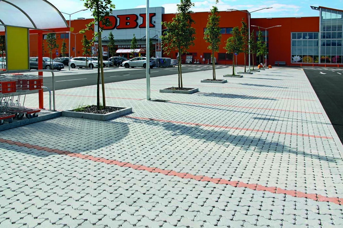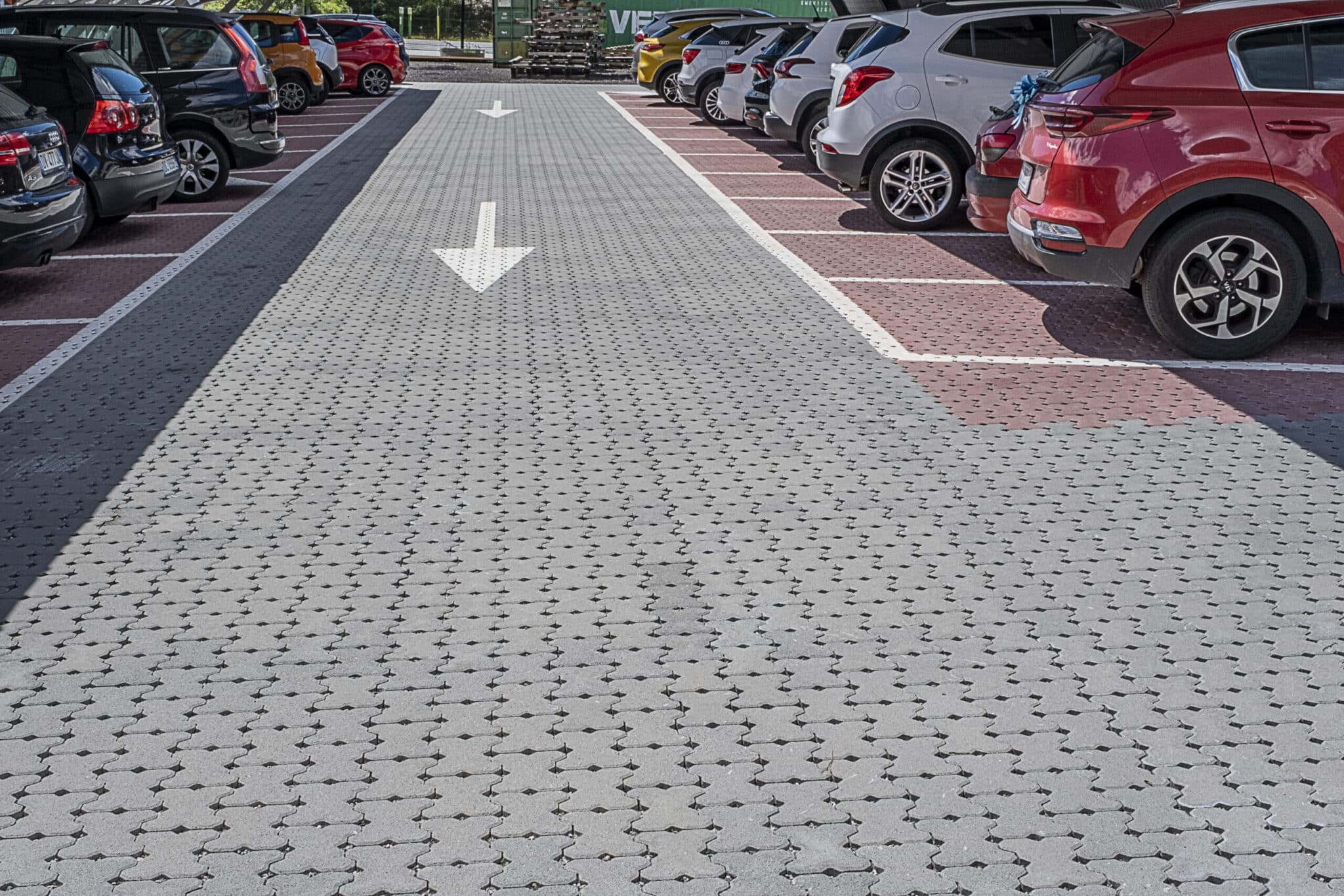 Scegli Traffic per pavimentazioni drenanti che uniscono funzionalità pratica e capacità comunicativa. Ideale per parcheggi commerciali, aree di sosta, piazzali a destinazione mista, zone pedonali e qualsiasi superficie dove sia necessario combinare permeabilità idrica, resistenza strutturale e possibilità di delimitazione visiva attraverso il contrasto cromatico.